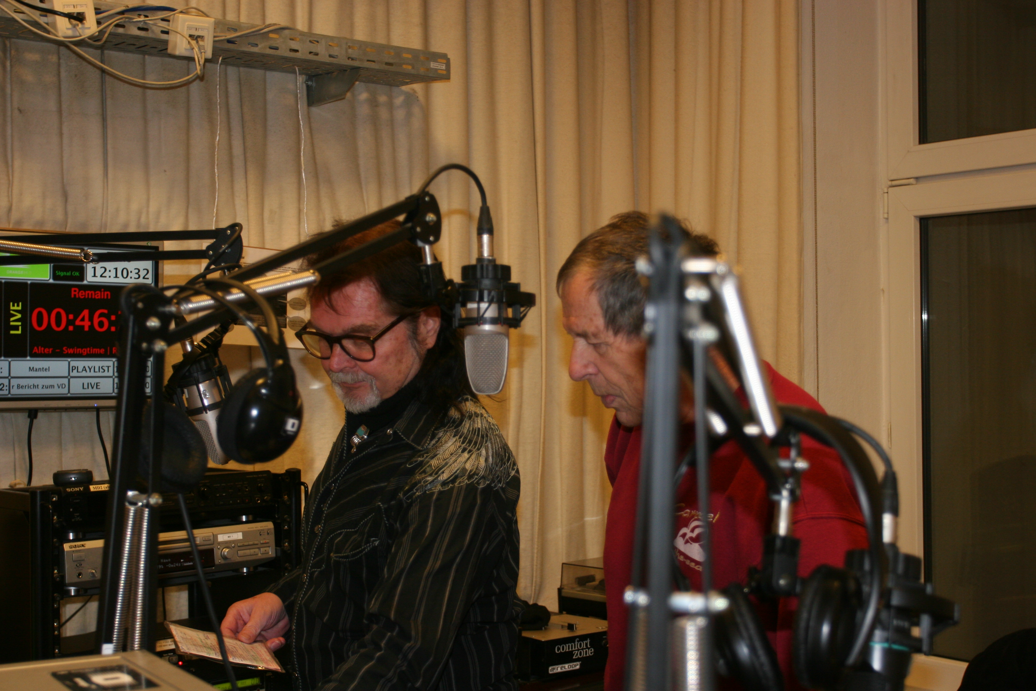 Radiomacher der Sendung Swingtime im Studio in der Klosterneuburgerstrasse 1.
