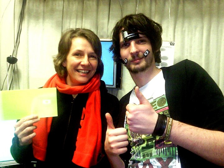 Radiomacherin Birgit Denk der Sendung Was gibt es Neues mit Gast Phil im Studio in der Klosterneuburgerstrasse 1.