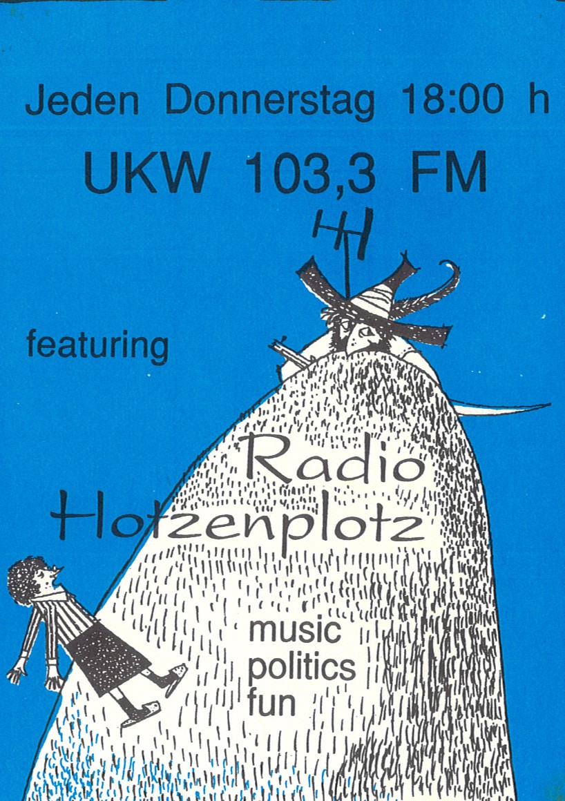 Werbung für die Pirat_innensendung Radio Hotzenplotz auf Radio UKW 103.3
